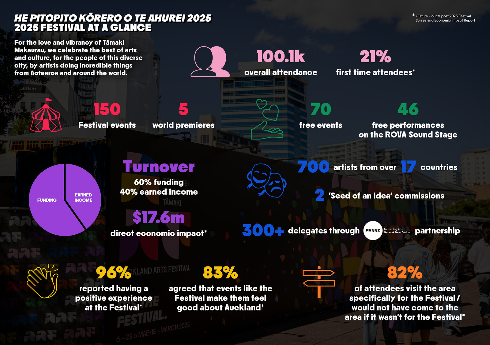 An impressive 83% of attendees agree that events like the Festival make them feel proud of Auckland, and that sense of pride and connection is at the heart of everything we do.