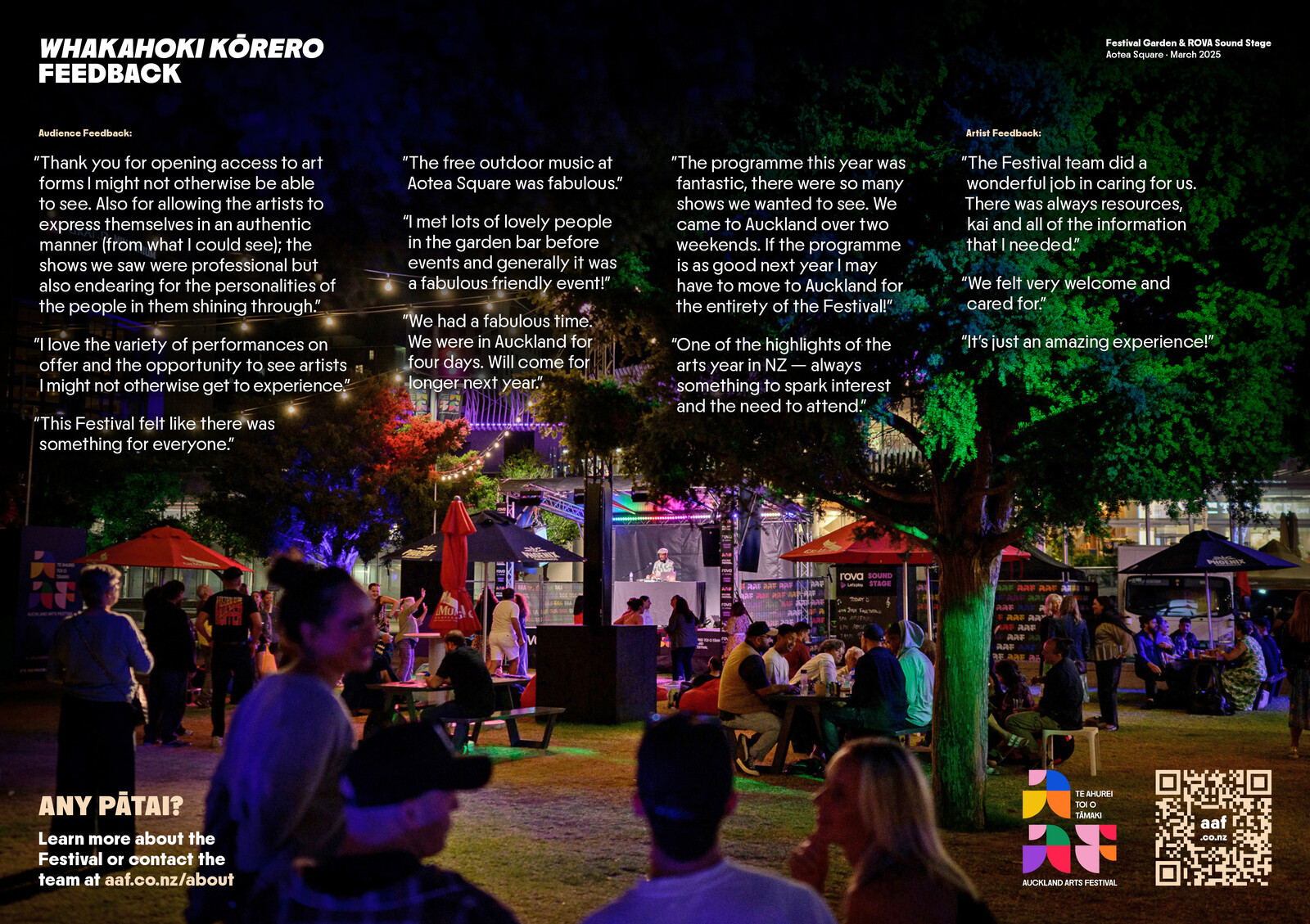 Below are some highlights from our 2025 Festival. We look forward to seeing what 2026 will bring, as locals and visitors continue to fall in love with Tāmaki Makaurau, its people, its places, and its pulse.